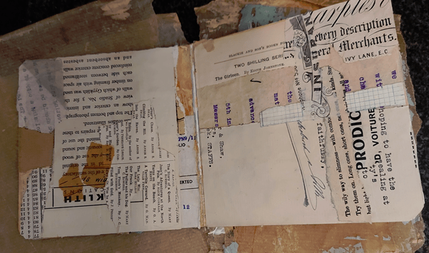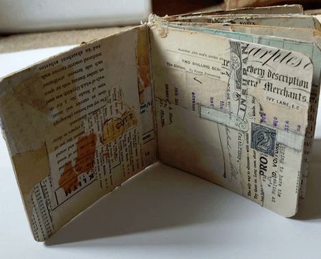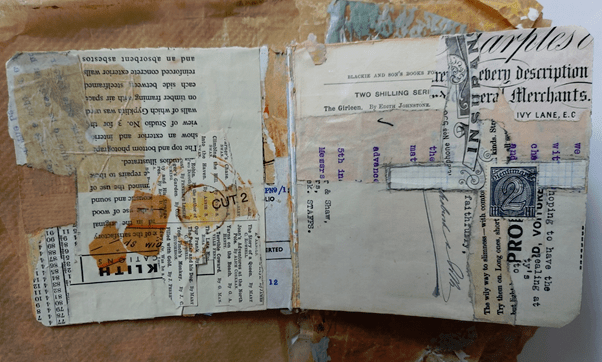 Once all the pages in the book have been covered in a first layer of collage, I start from the beginning again to see where I need to add extra elements.