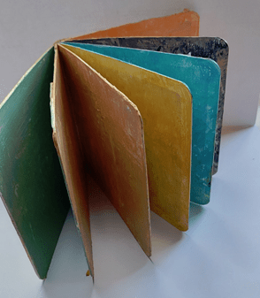 The other thing I like about these altered books is that, unlike works on paper or canvas, they don’t need to be framed. They can be displayed just as they are, on any available surface and, something that’s important to me, they can be picked up and touched. I’m one of those people who always wants to touch sculptures in museums and galleries. I don’t, of course, unless invited to, but I do think there is something especially appealing about tactile artworks to enable a personal connection between the viewer and the work.